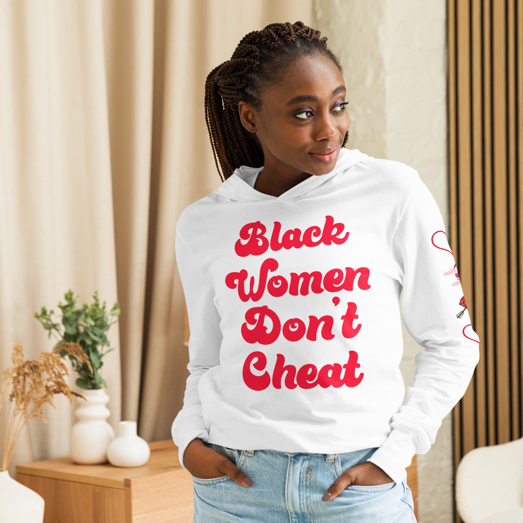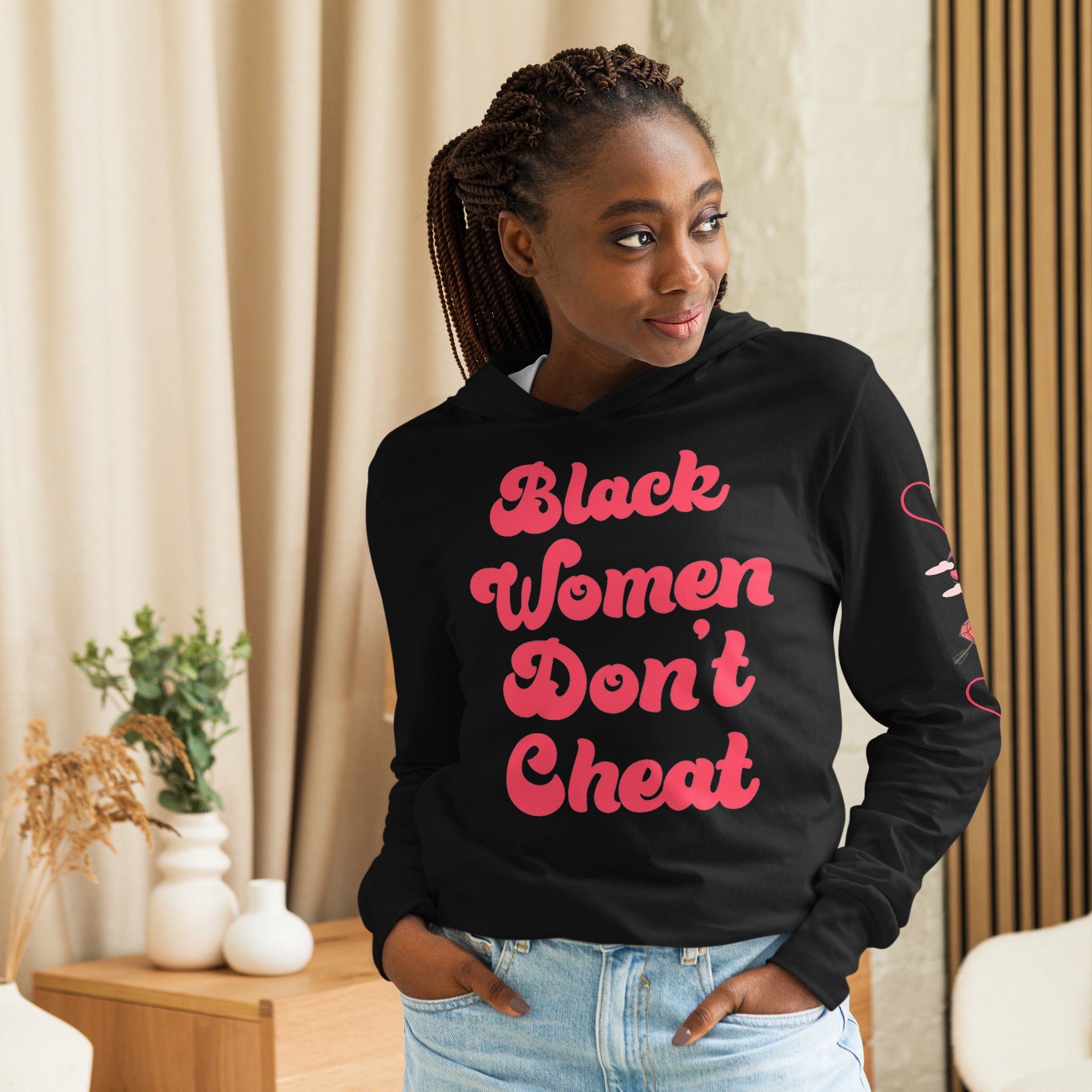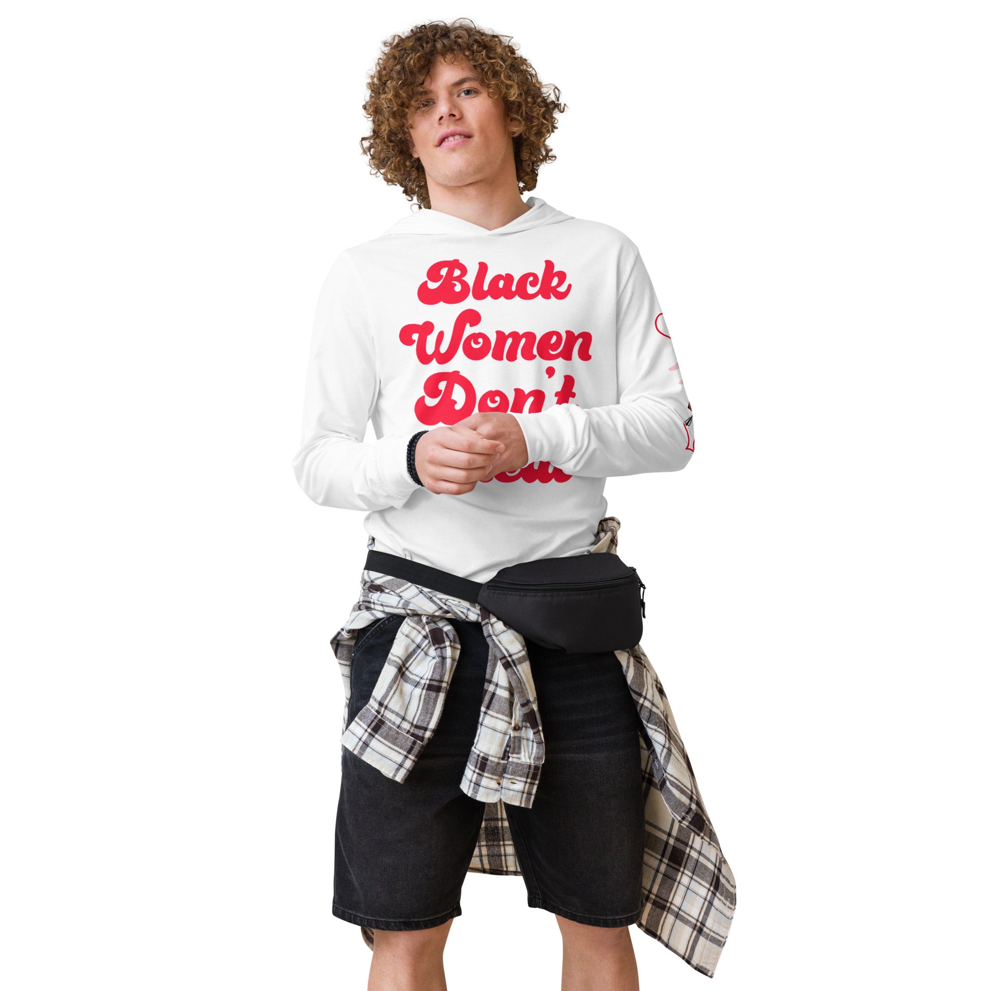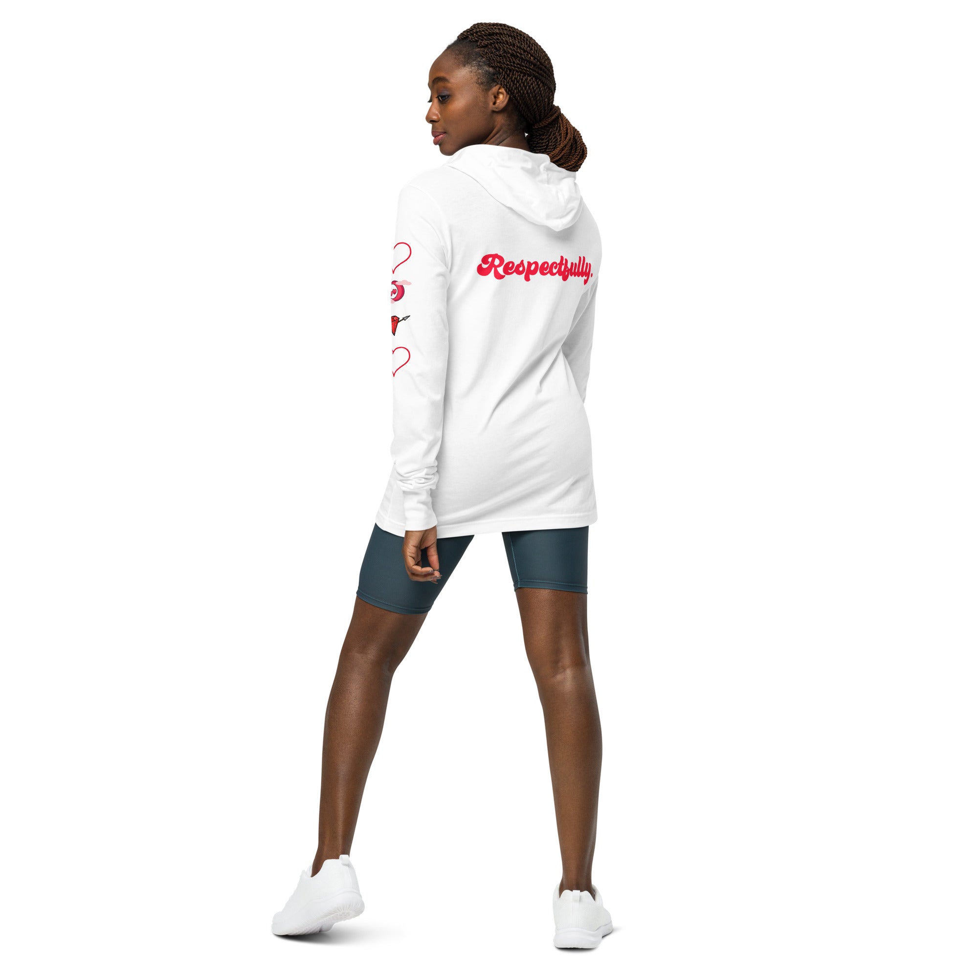 With its long sleeves and comfortable hood, this tee is perfect for layering, allowing you to create stylish outfits all year round. Plus, its lightweight construction allows for unrestricted movement, ensuring that you feel at ease no matter the occasion.