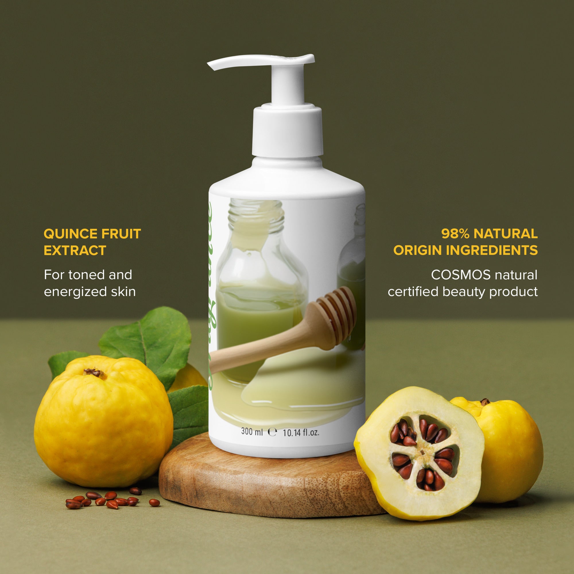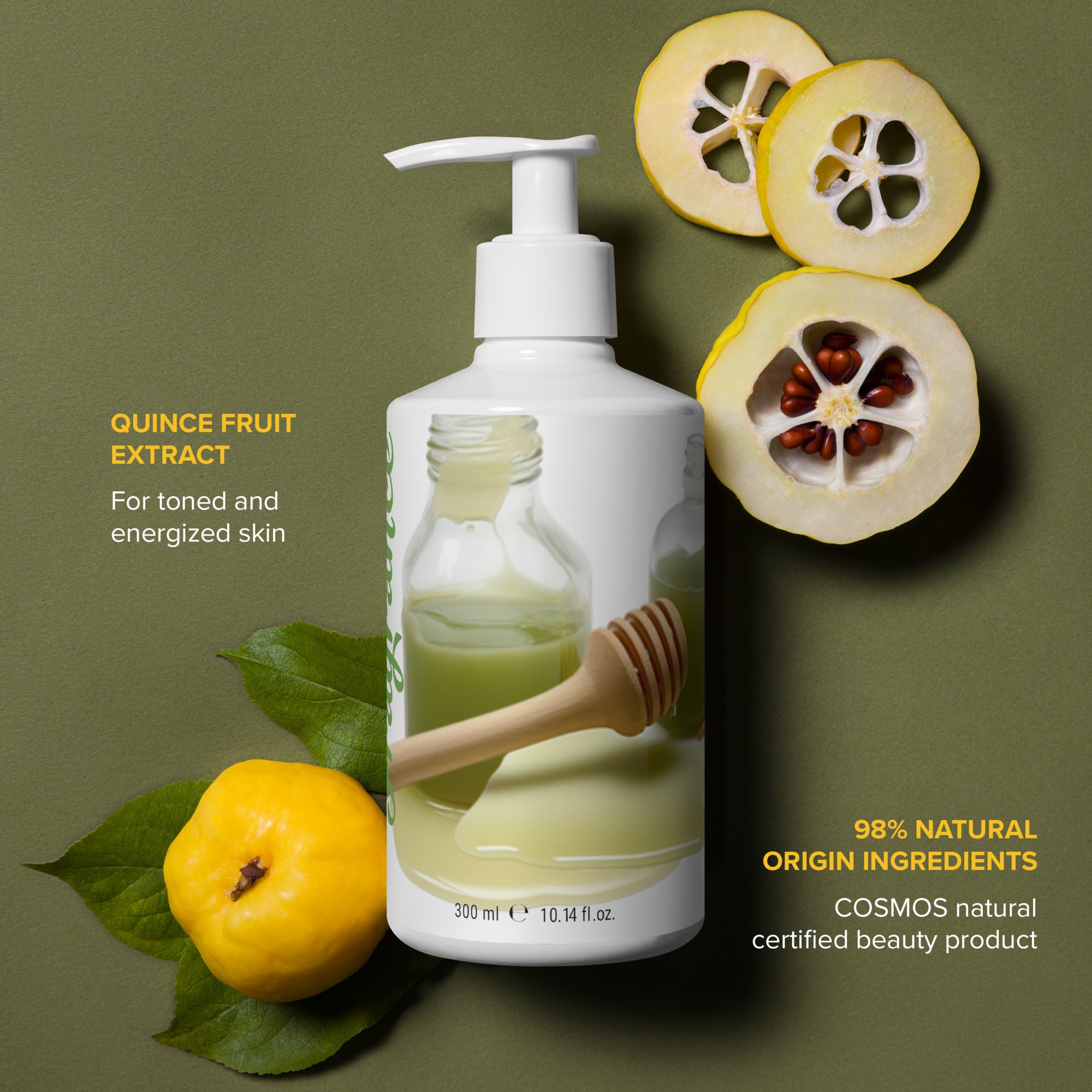 Ingredients: Aqua/Water, Sodium Coco-Sulfate, Sodium Cocoamphoacetate, Cocamidopropyl Betaine, Betaine, Coco-Glucoside, Citric Acid, Sodium Chloride, Parfum/Fragrance, Benzyl Alcohol, Pyrus Cydonia (Quince) Fruit Extract*, Sodium Benzoate, Potassium Sorbate, Linalool**, Citral**, Limonene**.